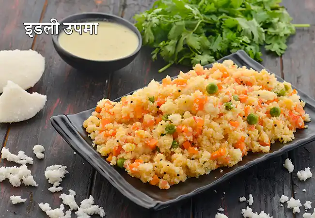 इडली उपमा बची हुई इडलियों से बनने वाला एक आरामदायक और स्वादिष्ट व्यंजन है। इसमें इडली को मसलकर राई, करी पत्ते, प्याज़ और मसालों के साथ भुना जाता है। यह जल्दी बनने वाला व्यंजन है और खाने की बर्बादी को कम करता है। इसकी बनावट नरम और हल्की भुरभुरी होती है। यह नाश्ते या हल्के डिनर के लिए उपयुक्त है और ऊपर से नींबू निचोड़कर सबसे अच्छा लगता है।
