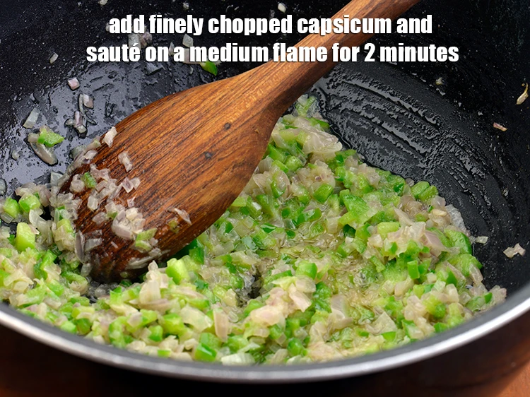 Add the 1/2 cup finely chopped capsicum an sauté on a medium flame for 2 minutes.