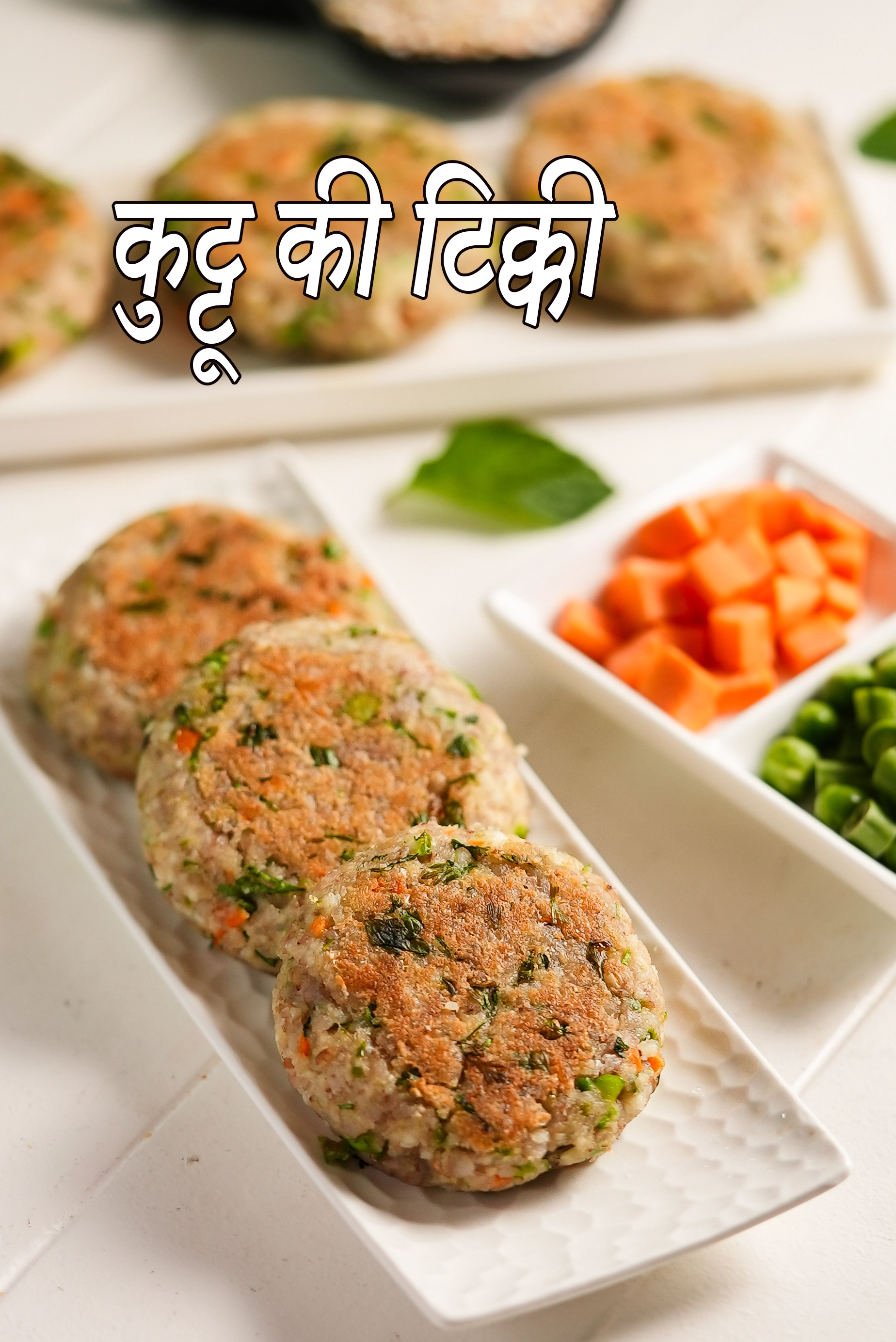 कुट्टू की टिक्की, कुट्टू, पनीर, ओट्स और सब्जियों से बने स्वादिष्ट और स्वस्थ शाकाहारी फ्रिटर्स हैं।
