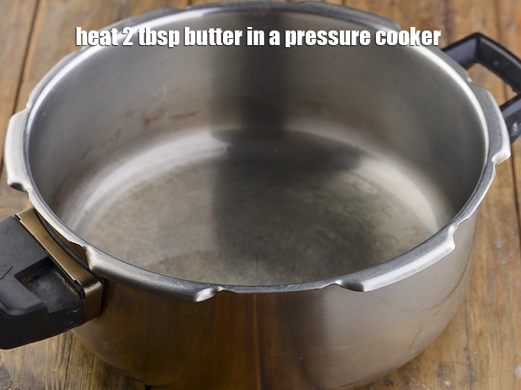 1. Heat the butter and salt in a pressure cooker, add the dry corn kernels and sauté on a medium flame for 30 seconds.