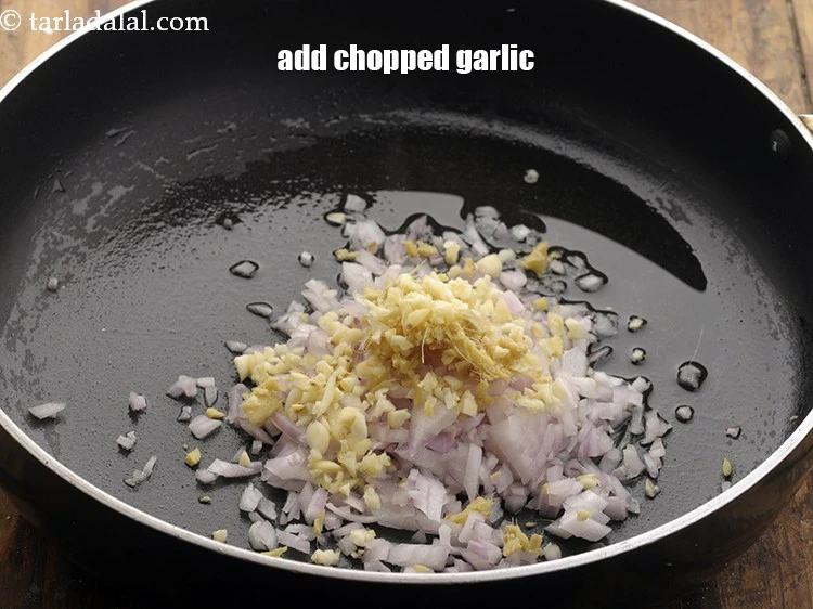 - Heat the oil in a broad non-stick pan, add the onions, ginger and garlic and sauté on a high flame for 1 minute.