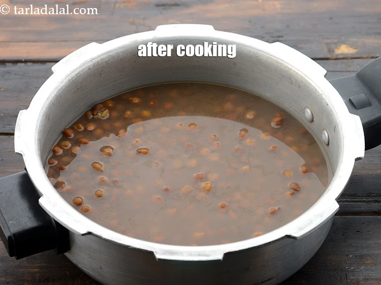 ढक्कन बंद करके 3 से 4 सीटी आने तक प्रेशर कुकर में पकाएँ।