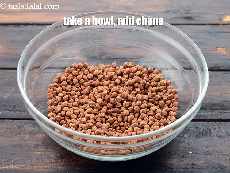एक बड़ा कटोरा लें और उसमें लगभग 3/4 कप चने लें।