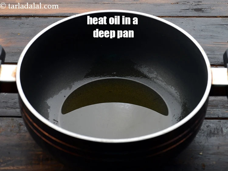 एक गहरे नॉन-स्टिक पैन में 1 1/2 टेबल-स्पून तेल ( oil ) गरम करें।