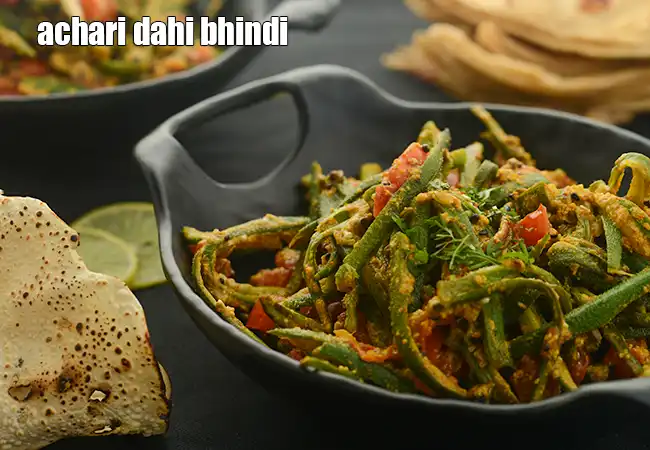 2. Achari Dahi Bhindi wide assortment of seeds and spice powders, which give it a super peppy flavour and aroma too.