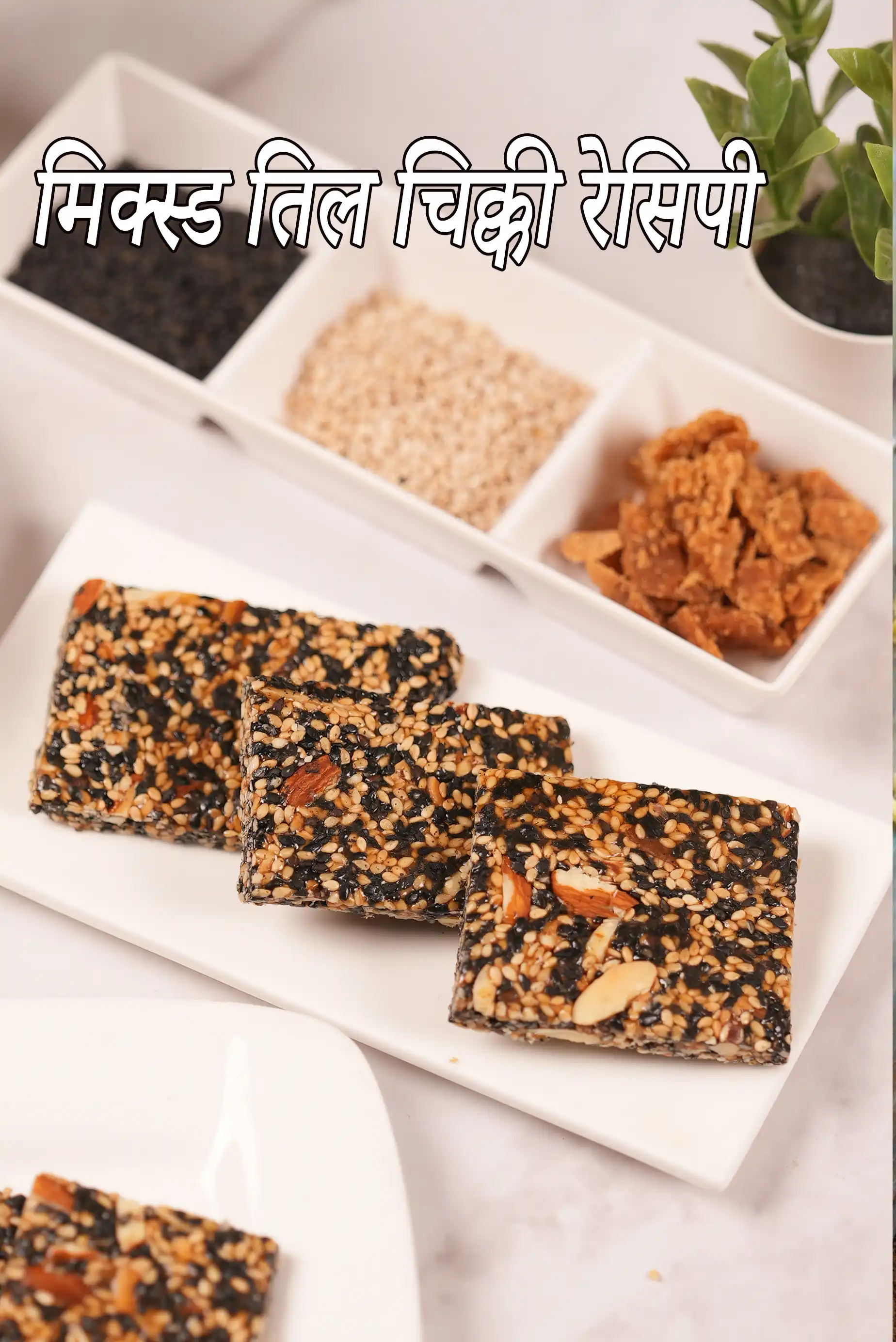 मिक्स्ड तिल चिक्की रेसिपी | मिक्स तिल की चिक्की | तिल की चिक्की | स्वस्थ तिल की चिक्की | आयरन से भरपूर तिल गुड़ चिक्की | mixed til chikki recipe in Hindi |