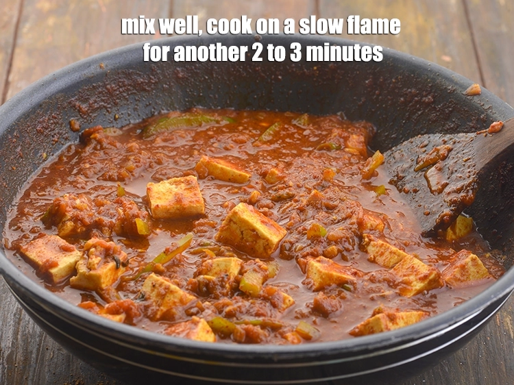 16. मिलाएँ और धीमी आँच पर रेस्टोरेंट स्टाइल कढ़ाई पनीर को २ से ३ मिनट तक पकाएँ।