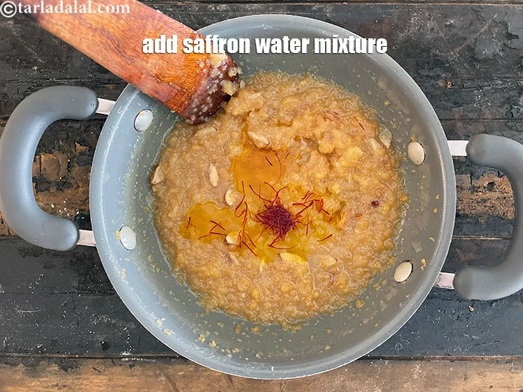 કેસર-પાણીનું મિશ્રણ ઉમેરો.