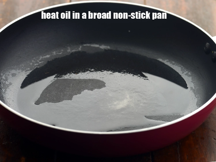- Heat the oil in a broad non-stick pan, add the chilli flakes and sauté on a medium flame for a few seconds.