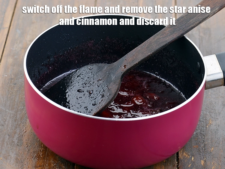 Switch off the flame and remove the star anise and cinnamon and discard it.