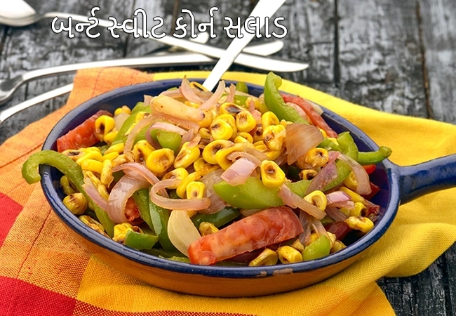 બર્ન્ટ સ્વીટ કોર્ન સલાડ | અમેરિકન બળેલા મકાઈનો સલાડ | સરળ શેકેલા મકાઈનો સલાડ | બળેલા મકાઈનો સલાડ | burnt sweet corn salad recipe
