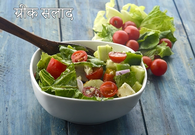 ग्रीक सलाद रेसिपी | ग्रीक सलाद बनाने का आसान तरिका | स्वस्थ शाकाहारी ग्रीक सलाद | ग्रीक सलाद कैसे बनाएं | greek salad in hindi | ग्रीक सलाद बनाने के लिए, पहले जैतून का तेल, अजवायन की पत्ती, नींबू का रस, नमक और काली मिर्च पाउडर स्वादअनुसार लें। फिर एक गहरे कटोरे में रोमेन लेट्यूस, फेटा चीज, हरी ककड़ी क्यूब्स, प्याज, चेरी टमाटर आधे कटे हुए और काले जैतून को मिलाएं। ड्रेसिंग जोड़ें और अच्छी तरह से मिलाएं। तुरंत परोसें।