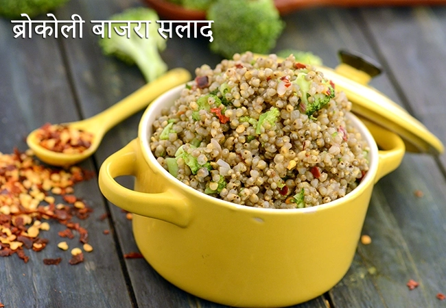 ब्रोकोली बाजरा सलाद रेसिपी | स्वस्थ साबुत बाजरा नाश्ता | वजन घटाने के लिए फाइबर युक्त भारतीय नाश्ता।