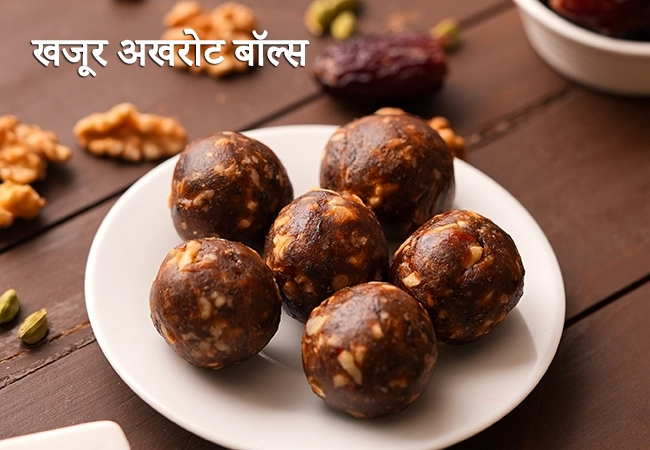 खजूर अखरोट बॉल्स रेसिपी | खजूर नट बॉल्स | डेट नट बॉल्स | शुगर फ्री डेट नट बॉल्स | Date and Walnut Balls