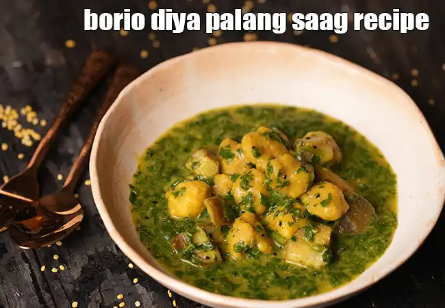 borio diya palang saag recipe | borio diya palang saag recipe | Bengali spinach, eggplant with lentil dumplings | palong shaak