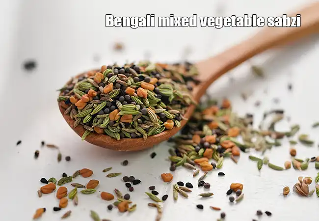 Spices used to make Bengali sabzi. Sabzi using panch phoron.
