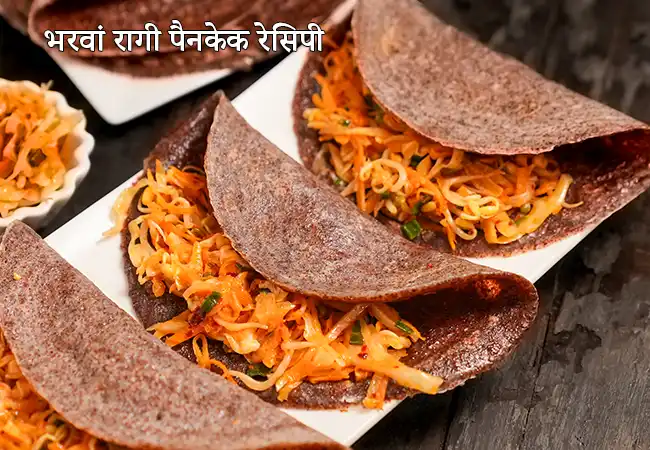स्टफ्ड रागी पैनकेक, जिन्हें नाचनी वेजिटेबल चीला या हेल्दी रेड मिलेट इंडियन पैनकेक भी कहा जाता है, एक पौष्टिक और संतुलित भोजन है जो स्वाद और स्वास्थ्य का बेहतरीन मेल है। रागी (नाचनी) से बने ये पैनकेक कैल्शियम, आयरन और फाइबर से भरपूर होते हैं, जो इन्हें हल्का, पेट भरने वाला और पौष्टिक नाश्ता या हल्का डिनर बनाते हैं। इस रेसिपी में रागी के साथ गेहूं का आटा मिलाया गया है जिससे इसकी टेक्सचर और पोषण मूल्य दोनों बढ़ जाते हैं। वहीं गाजर, पत्तागोभी, बीन स्प्राउट्स और हरे प्याज़ से बनी सब्ज़ी की स्टफिंग इसमें क्रंच, ताजगी और विटामिन्स जोड़ती है। बहुत कम तेल और बिना रिफाइंड आटे के बना यह व्यंजन एक हृदय-हितैषी, स्वादिष्ट और ऊर्जा देने वाला भारतीय पैनकेक है