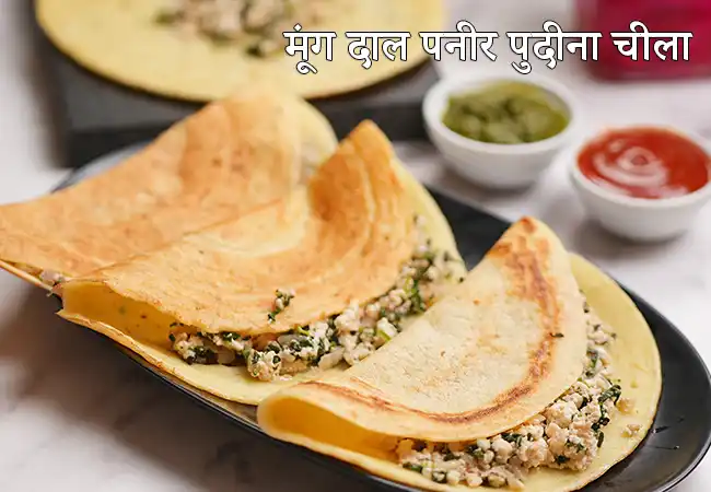 पीली मूंग दाल पनीर पुदीना चीला एक प्रोटीन से भरपूर, कम वसा वाला और डायबिटिक-फ्रेंडली भोजन है, जो हृदय स्वास्थ्य और वज़न नियंत्रणके लिए बेहद फायदेमंद है। भिगोई हुई पीली मूंग दाल से बना यह हेल्दी मूंग दाल चीला हल्का होते हुए भी पेट भरने वाला है और यह ब्लड शुगर लेवल को बढ़ाए बिना लंबी ऊर्जा प्रदान करता है। इसमें जोड़ा गया पनीर (कॉटेज चीज़) प्रोटीन और कैल्शियम का उत्कृष्ट स्रोत है, जो मांसपेशियों की मरम्मत और हड्डियों को मजबूत करने में मदद करता है, जबकि पुदीना और प्याज़ ताज़गी लाते हैं और पाचन में सहायता करते हैं। कम तेल में पकाया गया और फाइबर, एंटीऑक्सीडेंट्स और आवश्यक पोषक तत्वों से भरपूर यह मूंग दाल पैनकेक डायबिटीज़ के मरीजों और कोलेस्ट्रॉल या वज़न नियंत्रित करने वालों के लिए एक स्मार्ट विकल्प है। गरमागरम हरी चटनी के साथ परोसा गया यह व्यंजन एक संतुलित, पौष्टिक और दिल के लिए फायदेमंद नाश्ता या भोजन बन जाता है।