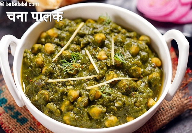 चना पालक रेसिपी | चना पालक मसाला | हेल्दी छोले पालक | छोले की सब्जी | चना पालक रेसिपी हिंदी में | chana palak in hindi | चना पालक की एक सर्विंग में आपके अनुशंसित आहार भत्ते (आरडीए) का 111% फोलिक एसिड, 125% विटामिन ए, 18% प्रोटीन, 119% विटामिन सी, 37% कैल्शियम, 24% आयरन, 41% मैग्नीशियम, 29% फॉस्फोरस मिलता है।
