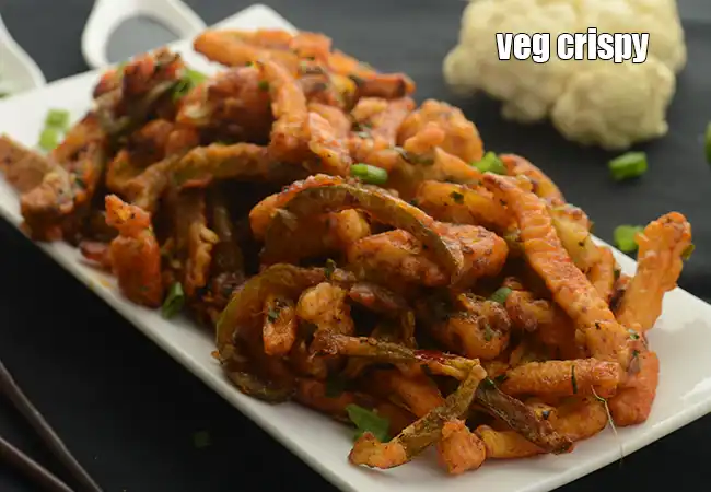 veg crispy recipe is a very popular starter in Chinese cuisine, this crisp, delicious dish is also quite convenient and quick to prepare. While there are many ways of preparing this crispy fried vegetables starter, here we have coated the veggie strips with a thick and flavourful batter before deep-frying them.