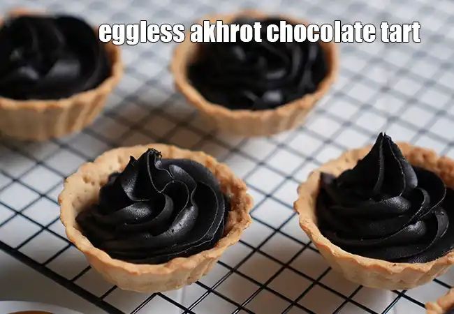 eggless akhrot chocolate tart recipe | Indian style chocolate walnut tart | mini chocolate and sea salt tart