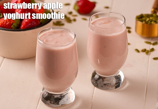 strawberry apple yoghurt smoothie recipe | apple strawberry smothie for chronic kidney disease | strawberry apple curd milkshake