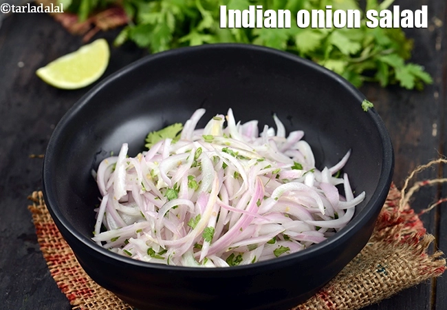 onion salad is a simple, tasty and quick side dish made all over India and goes well as an accompaniment with sabzis and dals. Learn how to make raw onion salad.