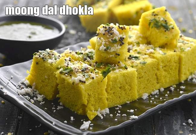 moong dal dhokla | Gujarati moong dal dhokla | steamed yellow moong dal dhokla | no fermentation moong dal dhokla |