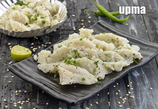 breakfast upma is made by roasting rava which is then a tempering of spices along with some onions and cooked on a slow flame for 3 to 4 minutes.