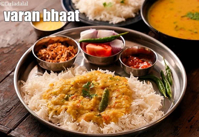 Varan Bhaat is a famous Maharashtrian dish of steaming hot rice topped with ghee and lentil curry. The toovar dal is prepared in a simple and homely manner that will appeal to everybody.
