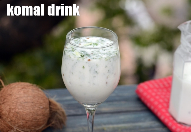 komal drink recipe | Gujarati komal drink | coconut flavoured buttermilk | komal summer drink of Gujarat | … More..