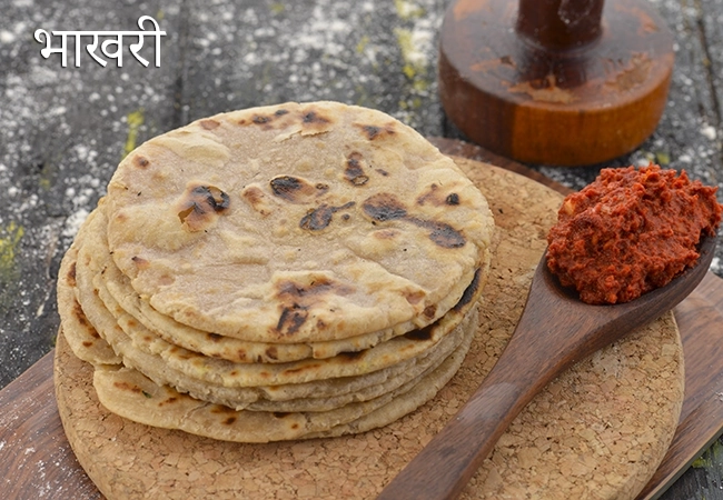 विशिष्ट रुप से भाखरी एक बिस्कुट जैसा ब्रेड है जिसमें घी और ज़ीरे का स्वाद होता है। काठियावाड़ी भाकरी महाराष्ट्र और गुजरात के व्यंजनों में लोकप्रिय है।
