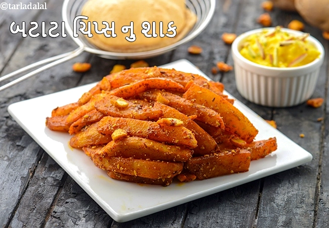 2. બટાટાની ચિપ્સ નું શાક | Gujarati chips nu shaak | Indian style aloo finger chips ki sabzi | Gujarati style dry batata nu shaak. બટાટાની ચીપ્સ્ નું શાક એક એવી અલગ અને મજેદાર વાનગી છે જે થોડી કરકરી છે ને સાથે-સાથે સ્વાદિષ્ટ પણ છે, જેથી આ વાનગી તમને જરૂર થી ભાવશે. અહીં તળેલા બટાટાને સાંતળેલા કાજૂ, સુગંધીદાર તેલીબીયા અને મસાલા સાથે મિક્સ કરવામાં આવ્યા છે જે રોટી, પૂરી અથવા ગરમા ગરમ ભાત સાથે મજેદાર સંયોજન બનાવે છે. તમને અહીં થોડા સાવચેત કરી દઇએ કે જો તમે રોટી બનાવવામાં થોડો પણ વિલંબ કરશો તો આ શાક તેથી પહેલાં જ પૂરું થઇ જશે એવું સ્વાદિષ્ટ તૈયાર થાય છે. આમતો આ ગુજરાતી વાનગીમાં મજેદાર સ્વાદ, ખુશ્બુ અને થોડો કરકરો અહેસાસ આપવાનો શ્રેય જાય છે તલ, ખસખસ અને જીરાને. આ શાકમાં તળેલા બટાટા નરમ પડે તે પહેલાં જ તેને ગરમ ગરમ પીરસી લો.