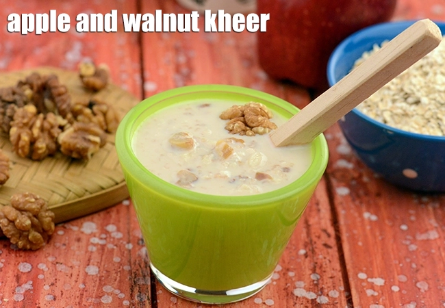 Apple and Walnut Kheer gives a boost of omega 3 fats from walnuts and antioxidants from apple, although the recipe uses low fat milk it is thickened by oats. Oats and apple fibre are great for reducing cholesterol levels.