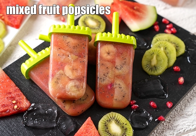 mixed fruit popsicles | healthy no sugar Indian fruit popsicles | homemade fruit lollipops