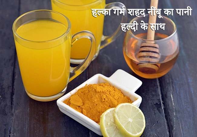 हल्का गर्म शहद नींबू का पानी हल्दी के साथ की रेसिपी | सर्दी के लिए ऐन्टी-इन्फ्लैमटॉरी रेसिपी | ऐन्टी-इन्फ्लैमटॉरी, ऐन्टी-फंगगल हल्दी के साथ ठंडे मौसम के उपाय की रेसिपी | ऐन्टी-इन्फ्लैमटॉरी नींबू पानी शहद डाल के हिंदी में | warm honey lemon water with turmeric