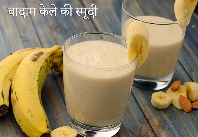 बादाम केले की स्मूदी रेसिपी | पौष्टिक बादाम केले की स्मूदी | बादाम और केले की स्मूदी खजूर के साथ | | almond banana smoothie recipe in hindi