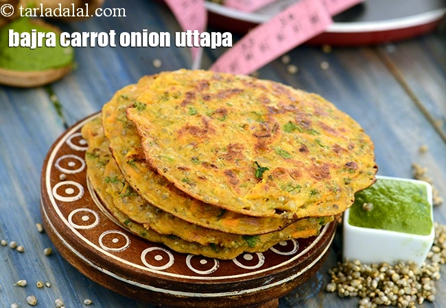 bajra carrot onion uttapam recipe | bajra uttapam | bajra onion uttapam breakfast recipe | healthy bajra uttapam