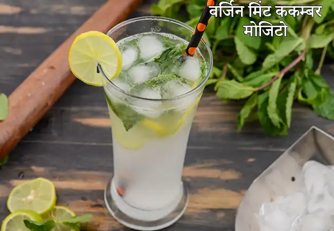 वर्जिन मिंट ककड़ी मोजिटो एक ठंडक देने वाला पेय है, जिसमें ताज़ा पुदीना और ककड़ी का स्वाद होता है।