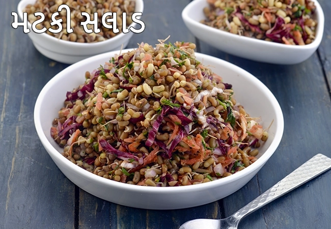 મટકી સલાડ રેસીપી |સ્વસ્થ સ્પ્રાઉટ્સ સલાડ |સરળ સ્પ્રાઉટ્સ સલાડ |સ્વસ્થ મોથ બીન સલાડ રેસીપી કેવી રીતે બનાવવી | See matki salad recipe. મટકી સલાડનો એક ભાગ તમારા ભલામણ કરેલ આહાર ભથ્થા (RDA) ના 18% આયર્ન, 16% કેલ્શિયમ, 16% પ્રોટીન પહોંચાડે છે.