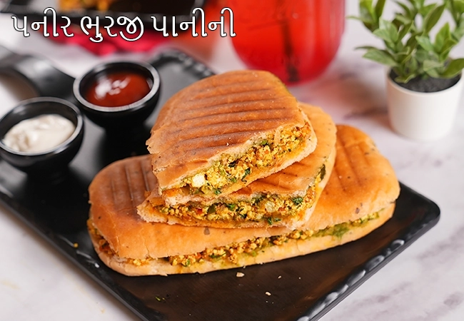 પનીર ભુરજી પાનીની રેસીપી | પનીર પાનીની | પનીર પાનીની સેન્ડવિચ | paneer bhurji panini recipe in Gujarati