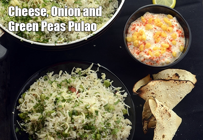 cheese onion green pea pulao recipe | kids tiffin cheese matar pulao | cheesy green peas pulao