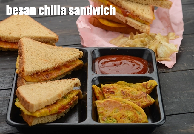 besan chilla sandwich recipe | bread chilla sandwich | Indian pudla sandwich | cheela sandwich tiffin recipe