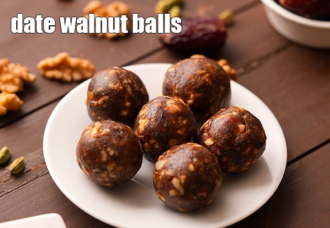 date walnut balls recipe | khajur akhrot balls | 3 ingredient vegan date nut balls | sugar free date nut balls | Can be made in advance and store refrigerated in an air-tight container. This should last for 30 days.