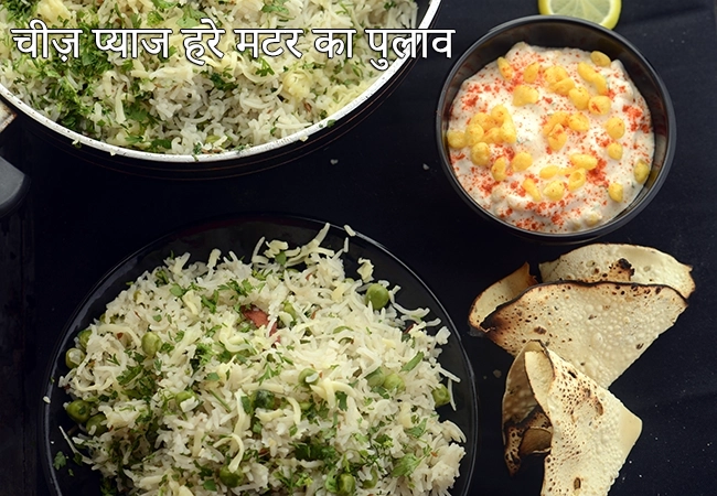 चीज़ प्याज हरे मटर का पुलाव रेसिपी | बच्चों के लिए पुलाव | प्याज हरे मटर का पुलाव | टिफिन के लिए चीज़ पुलाव | cheese onion and green peas pulao