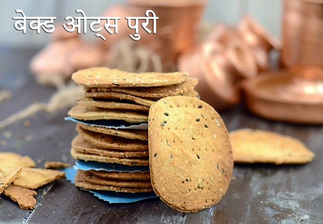 बेक्ड ओट्स पुरी रेसिपी | वजन घटाने के लिए बेक्ड ओट्स पुरी | स्वस्थ बेक्ड पुरी स्नैक | baked oats puri recipe