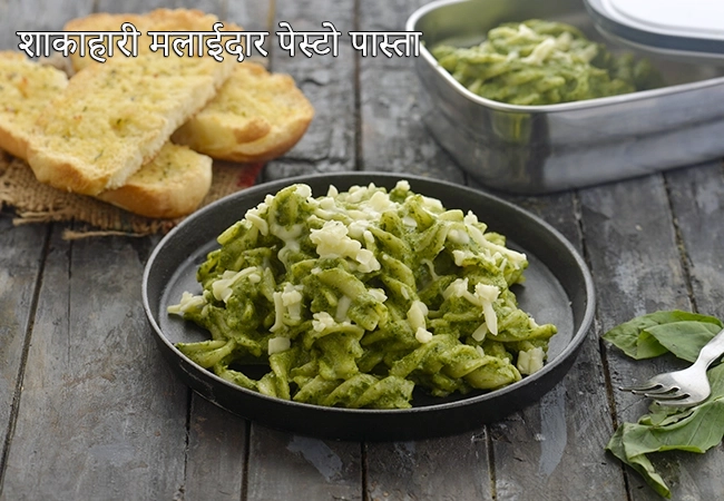 क्रिमी पेस्तो पास्ता रेसिपी | वेजिटेरीयन पेस्तो पास्ता | टिफिन के लिए वेज पेस्तो पास्ता | vegetarian creamy pesto pasta