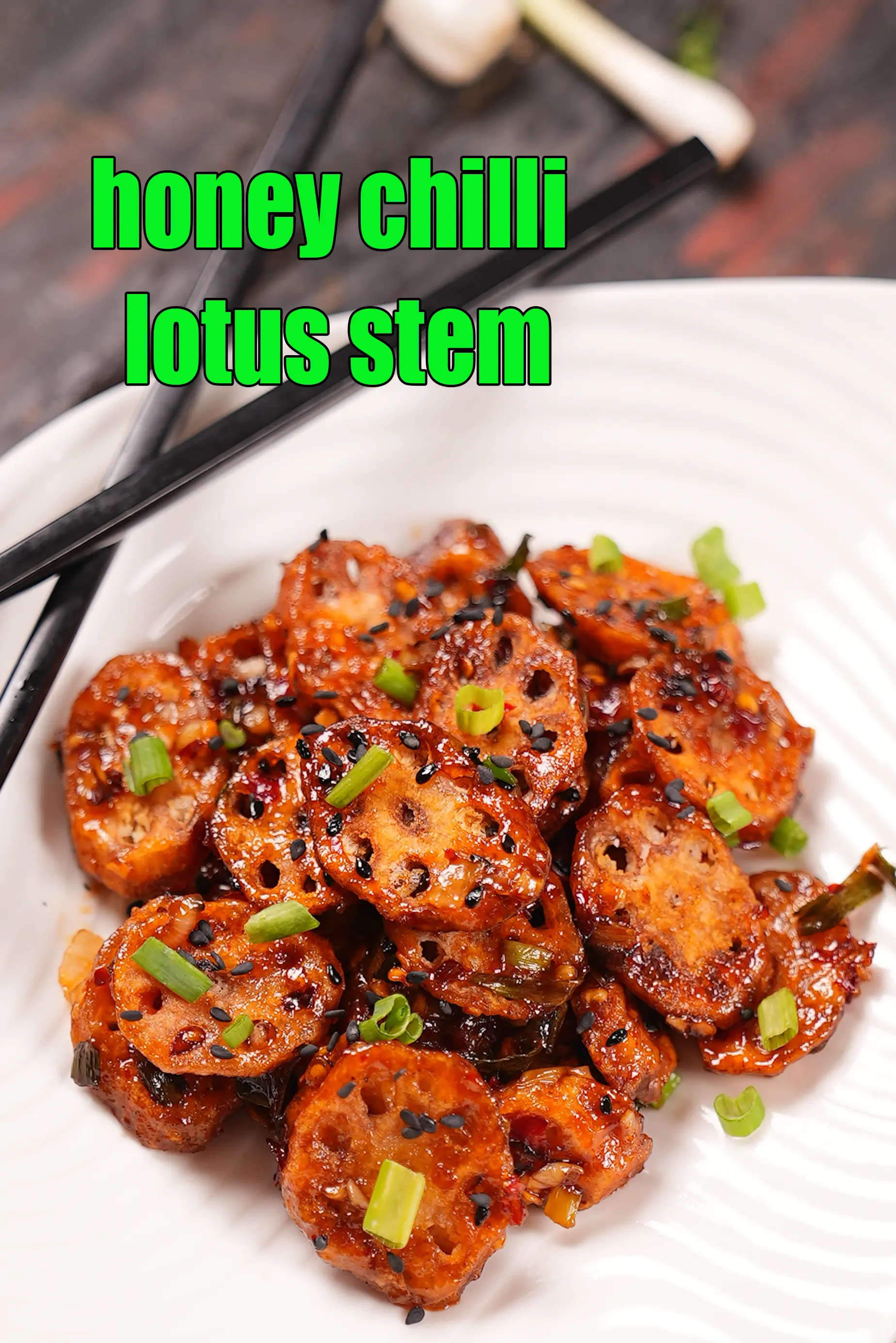 honey chilli lotus stem recipe | crispy lotus stem in honey chilli sauce | oriental crispy lotus stem … More..