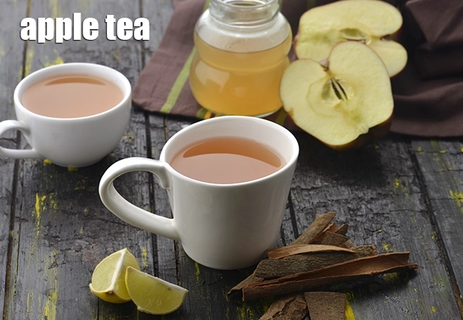 Grated apples with a dash of lemon juice, little dalchini and sugar stewed with green tea bags makes a refreshing Apple tea.