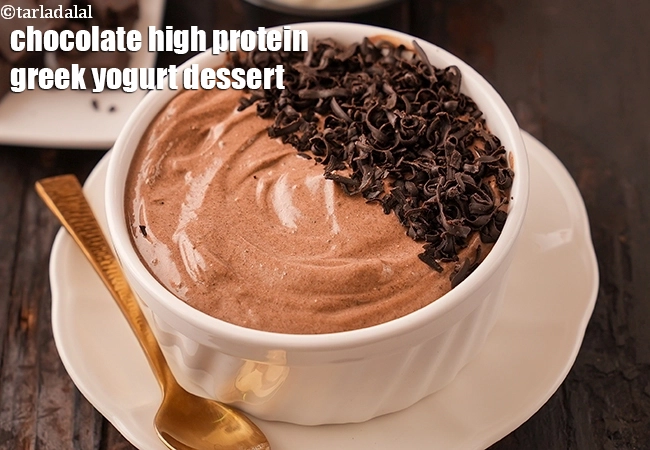 chocolate high protein greek yogurt dessert recipe | protein rich Indian yogurt dessert | 9 grams protein easy dessert. This delicious and nutritious chocolate high protein greek yogurt dessert is a perfect way to satisfy your chocolate cravings while boosting your protein intake. The combination of unsweetened cocoa powder and Greek yogurt not only makes for a rich and creamy treat but also keeps it healthy and guilt-free. One serving of chocolate high protein greek yogurt dessert gives 9 grams of protein (16% of RDA). See calories of chocolate high protein greek yogurt dessert.